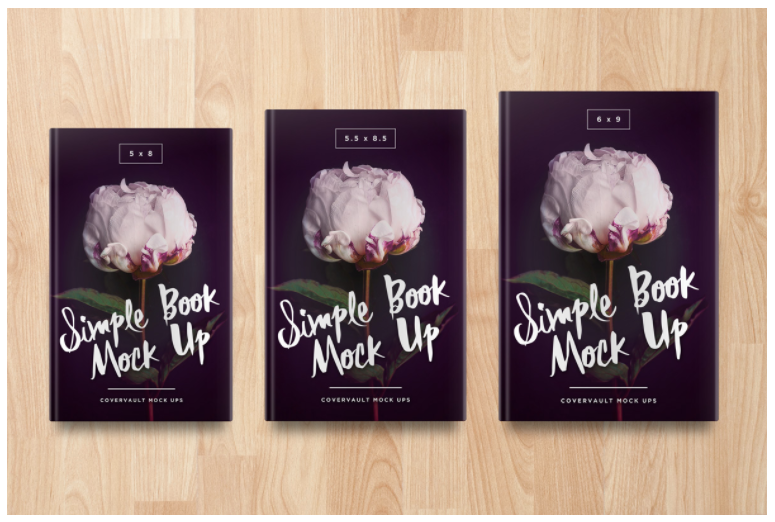 It’s an amazing, free resource on its own. The creator has designed mockups for dozens of cover sizes, most featuring backgrounds that you can use as-is. To add your cover art, you download the free .psd files (Photoshop extension) and use Photoshop (or maybe a comparable free resource, i.e. Photopea) to replace the stock covers with your own.